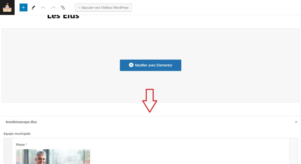 Pour gérer les élus, en ajouter ou en supprimer, vous ne devez pas passer par elementor.