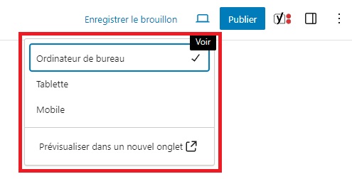 Si vous souhaitez prévisualiser votre actualité avant de la publier, il vous suffit de cliquer sur le pictogramme en forme d’ordinateur. Cela vous permettra d’avoir un aperçu de votre actualité dans les formats adaptés à un ordinateur, une tablette ou un téléphone mobile. Un fois le type d’écran choisi, veuillez cliquer sur « Prévisualiser dans un nouvel onglet » afin d’obtenir l’aperçu.