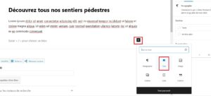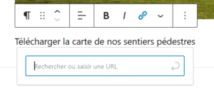 Si vous souhaitez ajouter un lien sur un texte, vous devez sélectionner le texte puis cliquer sur l’icône trombone, vous pourrez ensuite intégrer le lien dans l’encart prévu à cet effet :