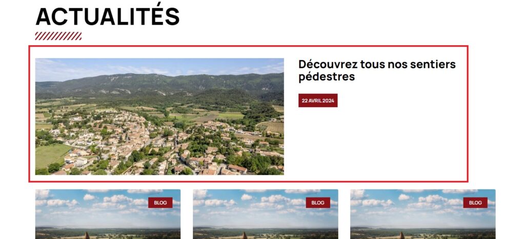 L’image mise en avant est un élément essentiel dans un article. En effet, cette image apparaitra en miniature sur votre site internet (comme dans l’exemple ci-dessous) ou sur les réseaux sociaux lorsque vous partagerez votre actualité.