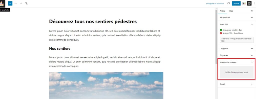 Pour la définir, vous trouverez un encart prévu à cet effet à droite de votre écran dans l’onglet « Article » :
