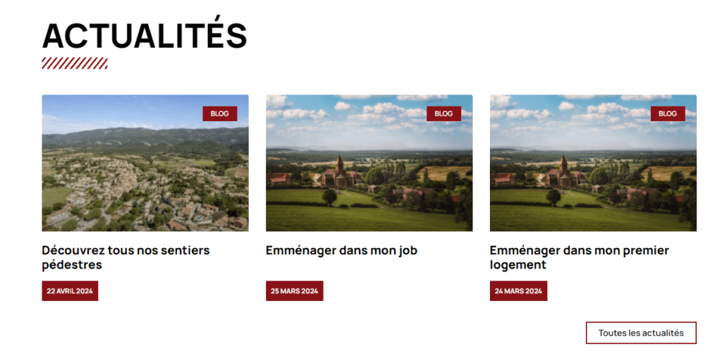 Les catégories d’actualités sont importantes puisqu’elles vont permettre de trier les articles selon des sujets spécifiques. De plus, cela va permettre d’afficher certains types d’articles sur des pages spécifiques comme les travaux. Ainsi, il est indispensable de définir précisément la catégorie de chaque actualité.