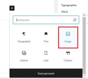 Il vous suffit de cliquer dans l’encart gris puis choisir votre photo soit dans votre médiathèque ou en la téléversant directement depuis les fichiers de votre ordinateur.